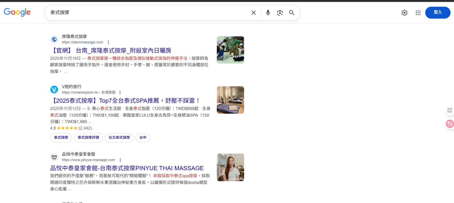 2025-12-13 目前 Google搜尋泰式按摩  排行榜  第一位 (無買廣告)